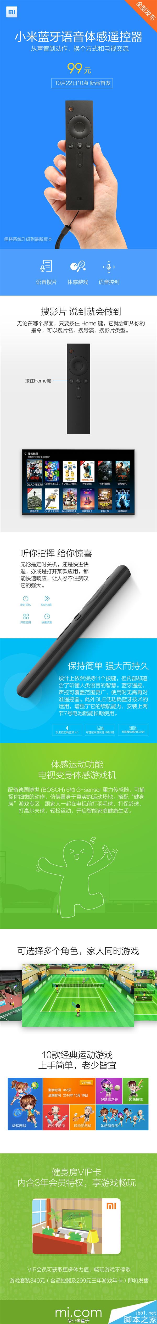 昨天发布小米电视3的同时,小米还带来的一款全新的蓝牙语音体感遥控器,售价99元,将于10月22日10点在小米网首发开售。