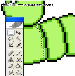 在原选区基础上整体收缩1个像素,并选择一个浅绿色。直接按[alt]+[delete]进行填充。