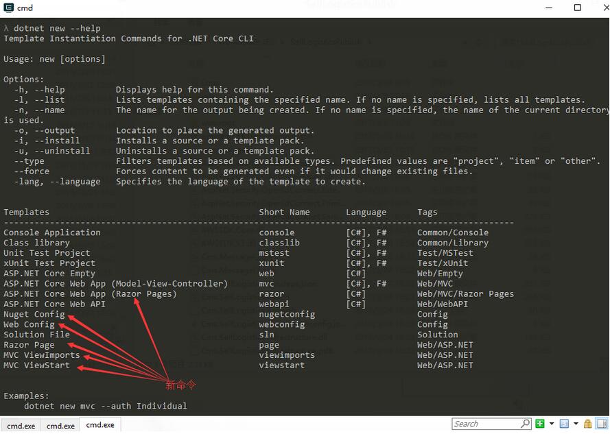 添加了这些新的cli命令。 其中 viewimports,viewstart 即为Razor视图中的_xxx.cshtml那两个文件.