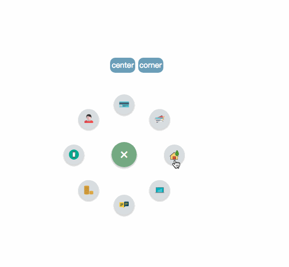 目前有center,corner两种位置,在menu的class里指定。center的class:.menu-center-wrapper