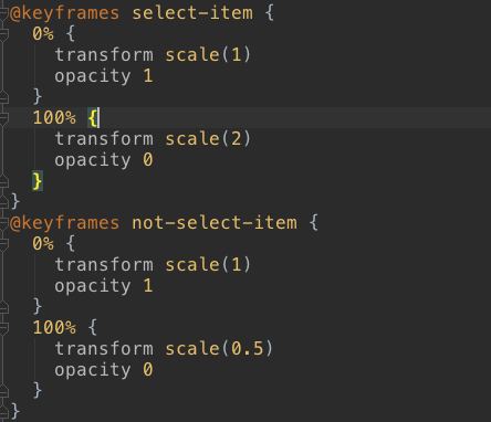 第二步,完成点击item之后item放大与消失,其他的item缩小与消失