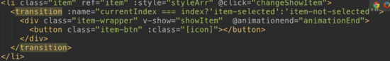 这里触发动画使用 vue提供transition ,当元素的v-show为false时,也就是display为none时,触发动画。