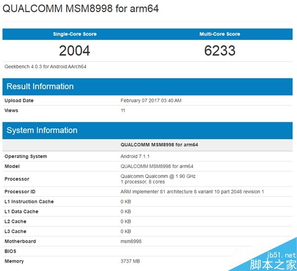 今天,GeekBench数据库中出现了一大波高通MSM8998处理器的跑分,按照此前曝光的消息,MSM8998就是骁龙835处理器的型号。