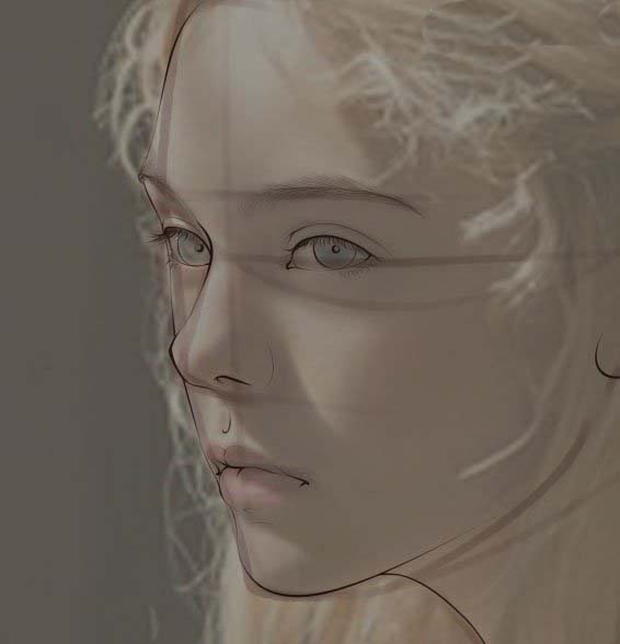 1、虽然没打算重新打稿,不过这个妹子头发挡的太多,弄个结构线出来这样清楚一点。