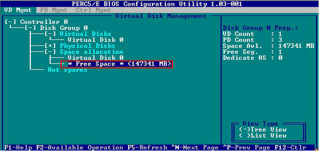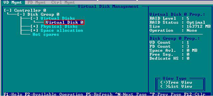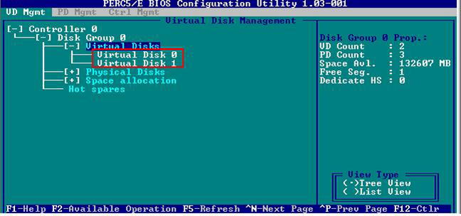 9、在此界面,将光标移至图中Virtual Disk 0处,按F2键可以展开对此虚拟磁盘操作的菜单。