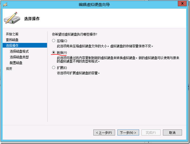 5、可以把固定大小的VHD转换成动态的VHDX,也可以把动态的VHD转换成固定的VHDX。