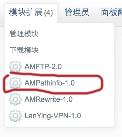 如果你的主机上安装了AMH,那么恭喜你,配置就容易了。先安装“AMPathinfo”模块,然后在这个模块的列表上,开启你网站的pathinfo