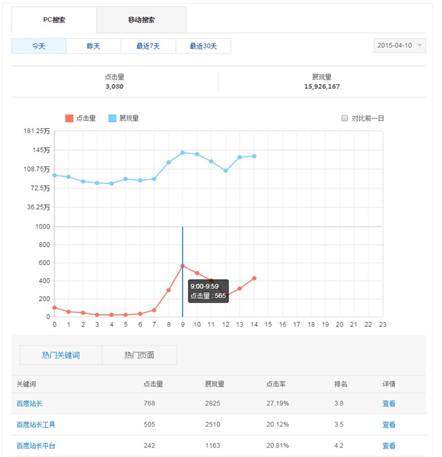 面对这一举措,对全网来说是皆大欢喜,但对于网站站长或SEO从业者来说可能也带来一些愁云——网站的关键词流量无法轻易获取。其实,熟悉百度的用户基本都知道百度站长平台的“流量与关键词”工具,一直致力于为广大站长提供最为精准的关键词流量数据:热门关键词、点击量、展现量、点击率、以及在百度搜索结果页的综合排名、走势一一尽现。