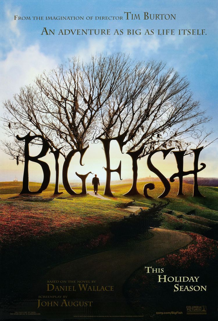 鬼才导演蒂姆波顿在2003年时完成的一部富有奇幻色彩的影片。海报中影片的名称《BIG FISH》占据了主要位置,由地下生长出来的字体之树生发出奇异的枝桠(了解蒂姆波顿木偶系列电影的同学一定对这个圈圈非常熟悉),奇幻、神秘色彩和影片中的故事相互呼应,味道很足。