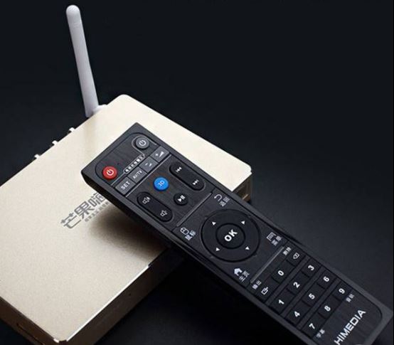 芒果嗨Q主机搭配的是学习型遥控器,手感不错。遥控器需要2节7号电池供电,背面还贴有学习遥控功能说明,数字键配合一键直达,操作很方便。