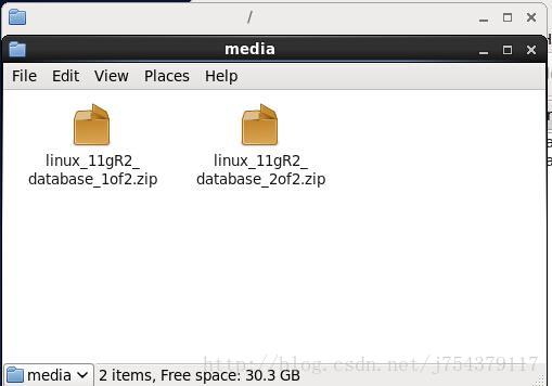 第十二步:将已经下载好的两个oracle压缩文件复制到/media文件夹里面,如图: