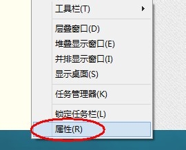 右键点击任务栏,选择“属性”,点击它,打开“任务栏和导航属性”窗口。
