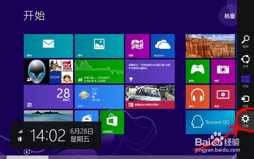 在右边渐显出来的工具里找到“设置”,并单击它。