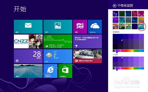 在打开的“个性化设置”里的上面这些图标里找到最后一个,并点击它,以使用它,这时“开始屏幕”的背景就会有相应的改变,已经变成和我们桌面设置的一样的背景了。