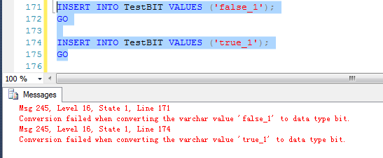 按照常规来说,bit类型字段只能存0或者1,所以直接inert 0或者1当然是没有问题的。
