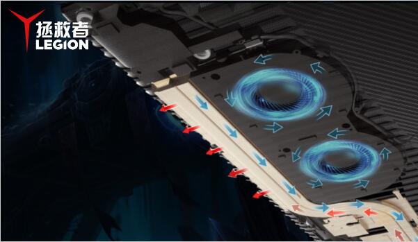 散热方面,拯救者R720的处理器和显卡则拥有全覆盖的散热底座,同时覆盖了周围的电感和电容,可以将热量集体从热管导出。 全黑化处理的纯铜导热管,可以防止热量在机身内部散发;而涡轮增压风扇相比普通风扇,声音更小风量更大,可以将热量迅速导出。出风口处,R720采用了高密度纯铜散热鳍片,保证了最优秀的导热性和足够的热交换面积,可以及时的散出热量。
