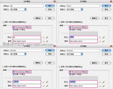 //时针(hours_mc) , 分针(minutes_mc) , 秒针(seconds_mc)