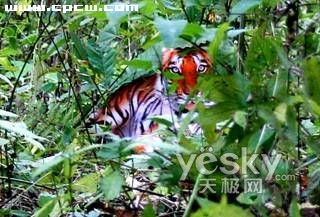 仿真要点:这张照片的最大的难度在于老虎前面树叶的遮挡,老虎藏身其中,看上去感觉非常真实(图1)。Photoshop中的实现方法有很多种,最简单的就是蒙版结合笔刷工具的使用,只要掌握了蒙版的原理,不出5分钟你能制作出这样效果的照片出来