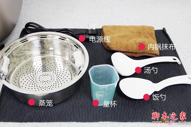 电饭煲配备了蒸笼,量杯,汤勺饭勺,内锅擦布和电源线等配套附件,确保制作过程安全,操作方便。
