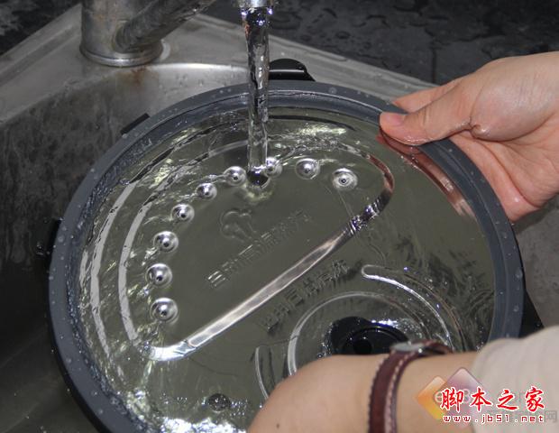 在清洗难易度测试环节,我们发现,美的鼎釜4086电饭煲的上盖有一个卡扣设计,只需轻轻一按即可将上盖拆卸下来,并且,产品的上盖材质较好,在冲洗时只需用水稍稍冲洗,即时不用清洁剂,也是可以清洗干净的,便于用户日常清洁。