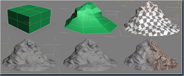 在制作了简单的雕塑基础之后,网格被子细分(subdivide)后用来接受 noise 修改器。