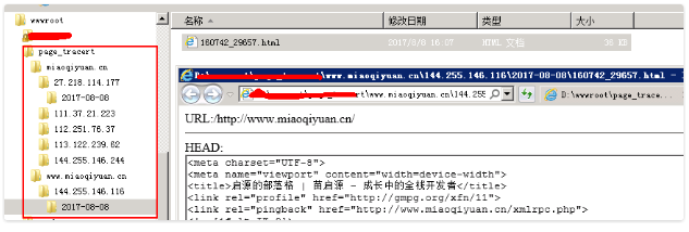 调用很简单,比如将 上边的php代码保存到了 /log/page_tracert.php,然后在整站页面中都加入 以下的代码,就可以获取到 所有的访问记录了。根据访问记录,得到 被植入的代码后,就可以进行检测脚本的开发了。