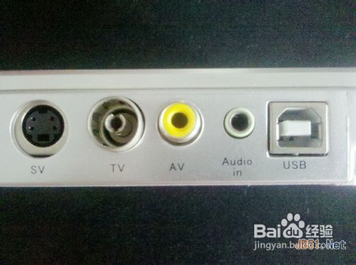 8、拿出USB电视盒,在边上会看到几个插孔,如下图所示:
