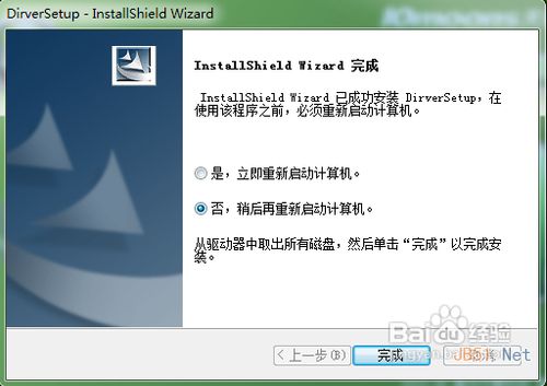 6、选择“始终安装此驱动程序软件”,继续下一步即可。最后完成时,选择“否,稍后再重新启动计算机”,如下图所示: