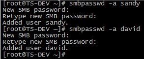 c. 将刚才建立的两个帐户添加到samba的账户中