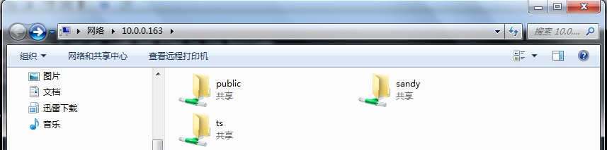g. 访问成功,可以看到公共的public目录,用户sandy的宿主目录,和其有权限访问的ts目录