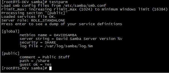 VIEW:查看Samba的文本配置文件,即smb.conf。