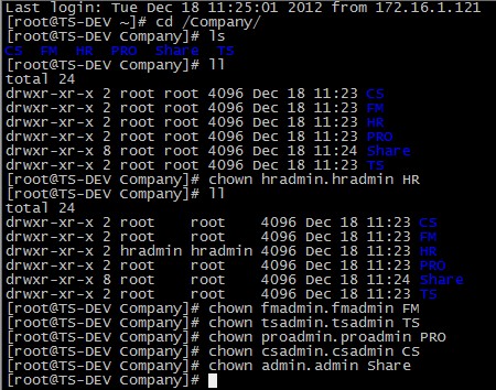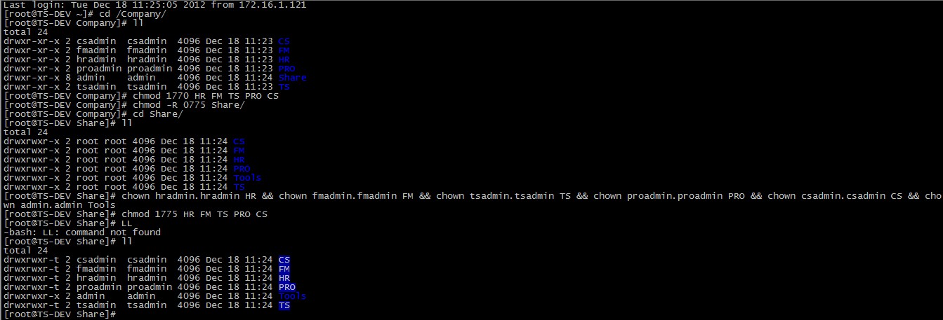 3. 每个部门都有一个管理本部门文件夹的管理员账号和一个只能新建和查看文件的普通用户权限的账号。