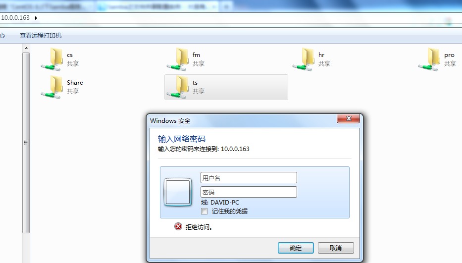 f. 到windows客户端验证,访问\\10.0.0.163,提示输入用户名和密码,在此输入sandy验证,如下图: