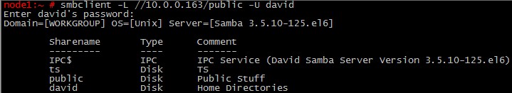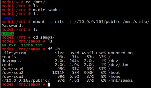 # mount -t cifs -l //10.0.0.163/public /mnt/samba/