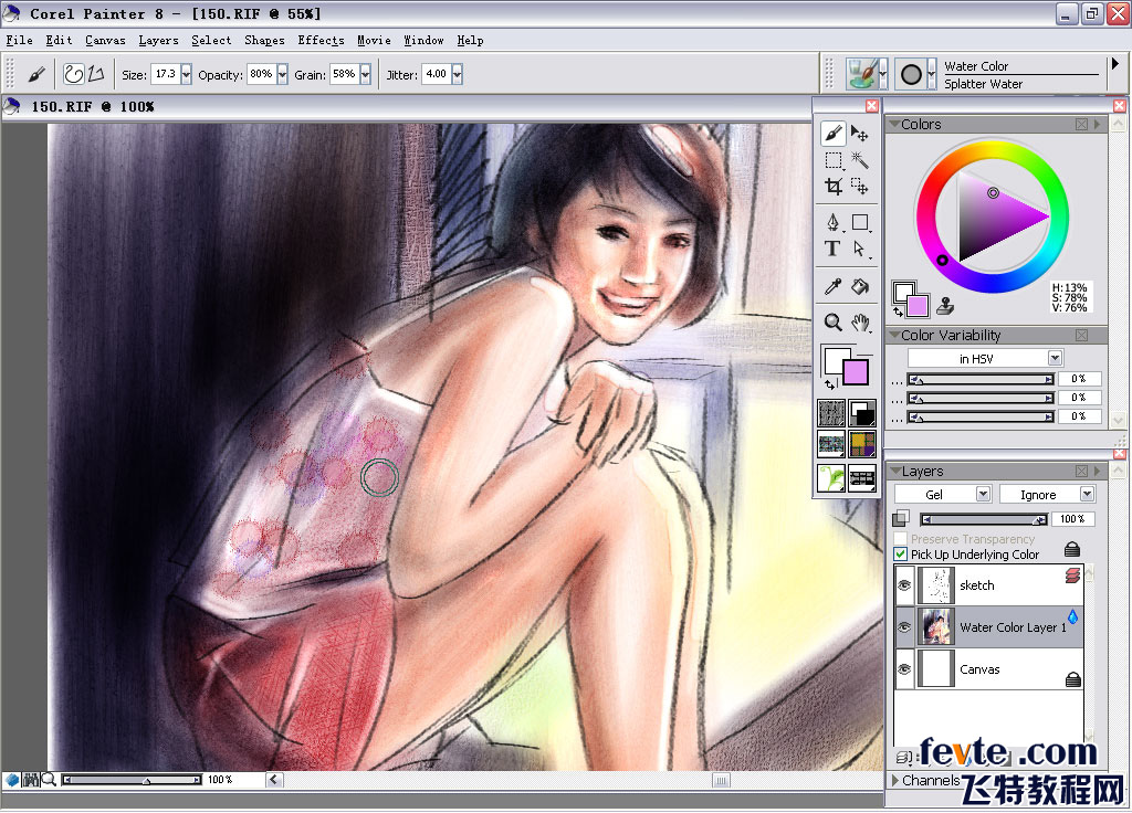教程结束,以上就是利用painter water color(水彩)绘制朦胧女孩过程,感兴趣的朋友可以尝试绘制一下!谢谢大家观看本教程!