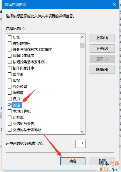 3、找到“备注”选项,将其勾选,然后点击确定退出即可。