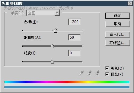2、使用【滤镜_模糊_高斯模糊】,然后使用【图像_调整_色相饱和度】〖CTRL_U〗为灰度图象着色。设定分别如下2图。