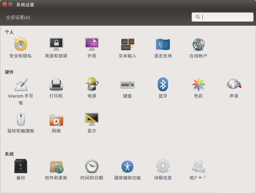 1、我们如果从windows转移到Ubuntu系统,首先要做的就是让系统可以上网,一方面安装软件更加方便,另一方面可以随时进行系统更新。这里就介绍如何在Ubuntu下设置IP地址。首先打开搜索界面,输入“系统设置”。