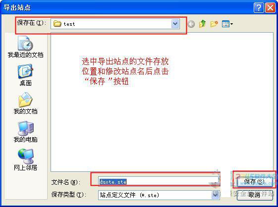 在“导出站点”对话框中选择导出站点的文件存放位置及修改导出站点名后点击“保存”按钮。如下图所示。