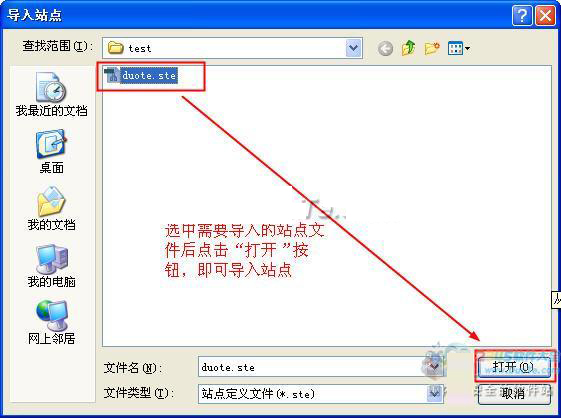 找到需要导入的站点文件,点击“打开”按钮后即可。