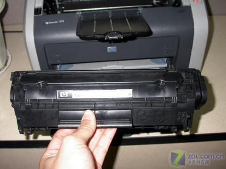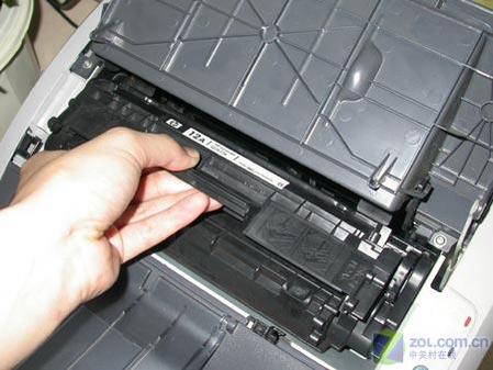 硒鼓顺着导轨滑到底部,之后轻微按一下