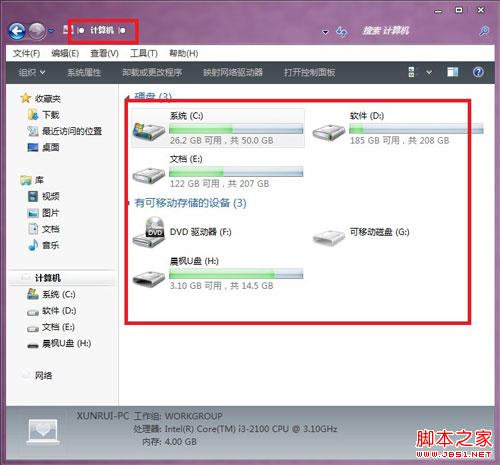1.首先双击桌面“我的电脑”或者使用组合键“win+E”打开“计算机”资源管理窗口: