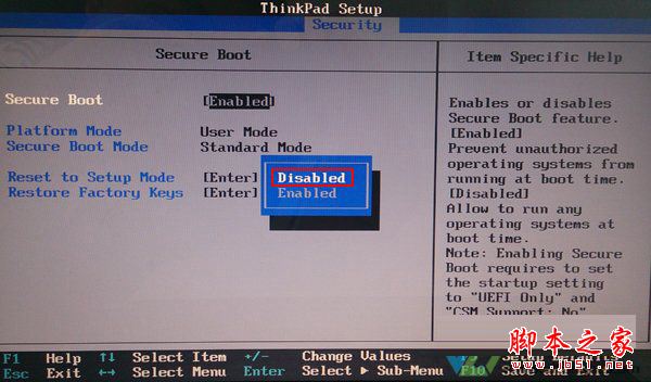 2、通过键盘方向键的操作,选择至“Security”栏目,寻找到栏目下“Secure Boot”并按下回车键确认进入: