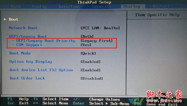 4、选择至“Startup”栏目,找到并移动至栏目中UEFI/Legacy Boot选项,按下回车键将对应参数设置为Both选项: