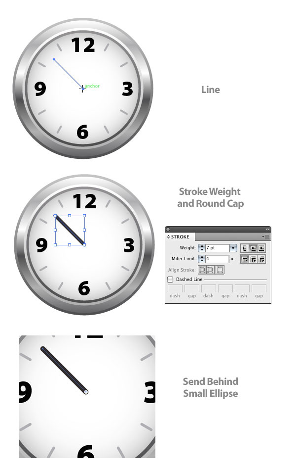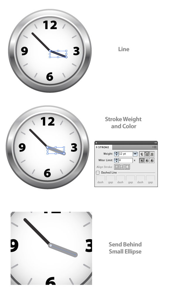 Step 15 在线的另一端画一个时针,宽度为12pt,并更改描边为灰色。