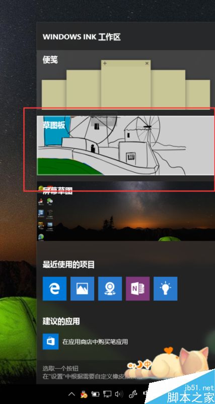 2、接下来,我们就会在任务栏托盘图标中看到Windows Ink的标识,点击该标识,即可进入功能页面。