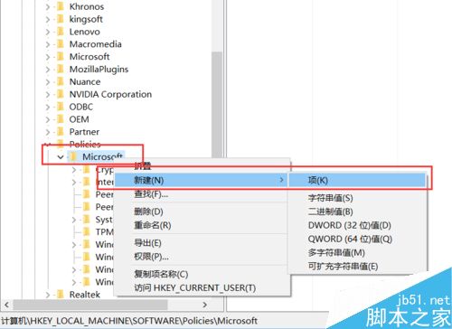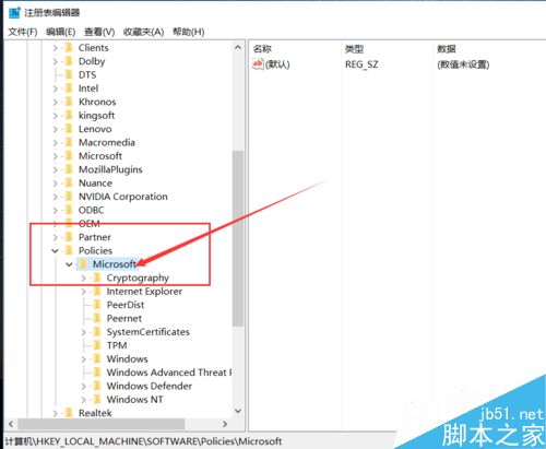 5、进入注册表编辑器页面之后,我们双击打开左侧的栏目选项,然后将其定位至:HKEY_LOCAL_MACHINE\SOFTWARE\Policies\Microsoft\