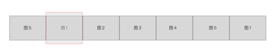 图中红线区域即是我们看到的图片,这个轮播 只展示5张图片 ,但是在它的首尾各还有两张图片,在图1前面放置了图5,在图5后面放置了图1,之所以这么做,是为了做无限滚动。 无限滚动的原理在于:当整个图向左侧滚动到右边的图5时,会继续向前走到图1,在完全显示出图1后,会以肉眼看不到的速度向右侧拉回到最左边的图1。 这样,即使再向左侧滑动看到的就是图2了。