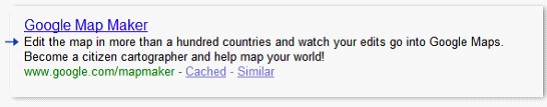 能够吸引人注意力的描述元标签被用作页面摘要;使用 Google.com 搜索[ google map maker ]的结果,2009年9月。