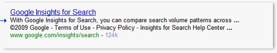 网页摘要来自于页面中的文本,但却不具备描述元标签(description meta tag):通过 Google.com 搜索[ google insights ]的结果,2009年9月。